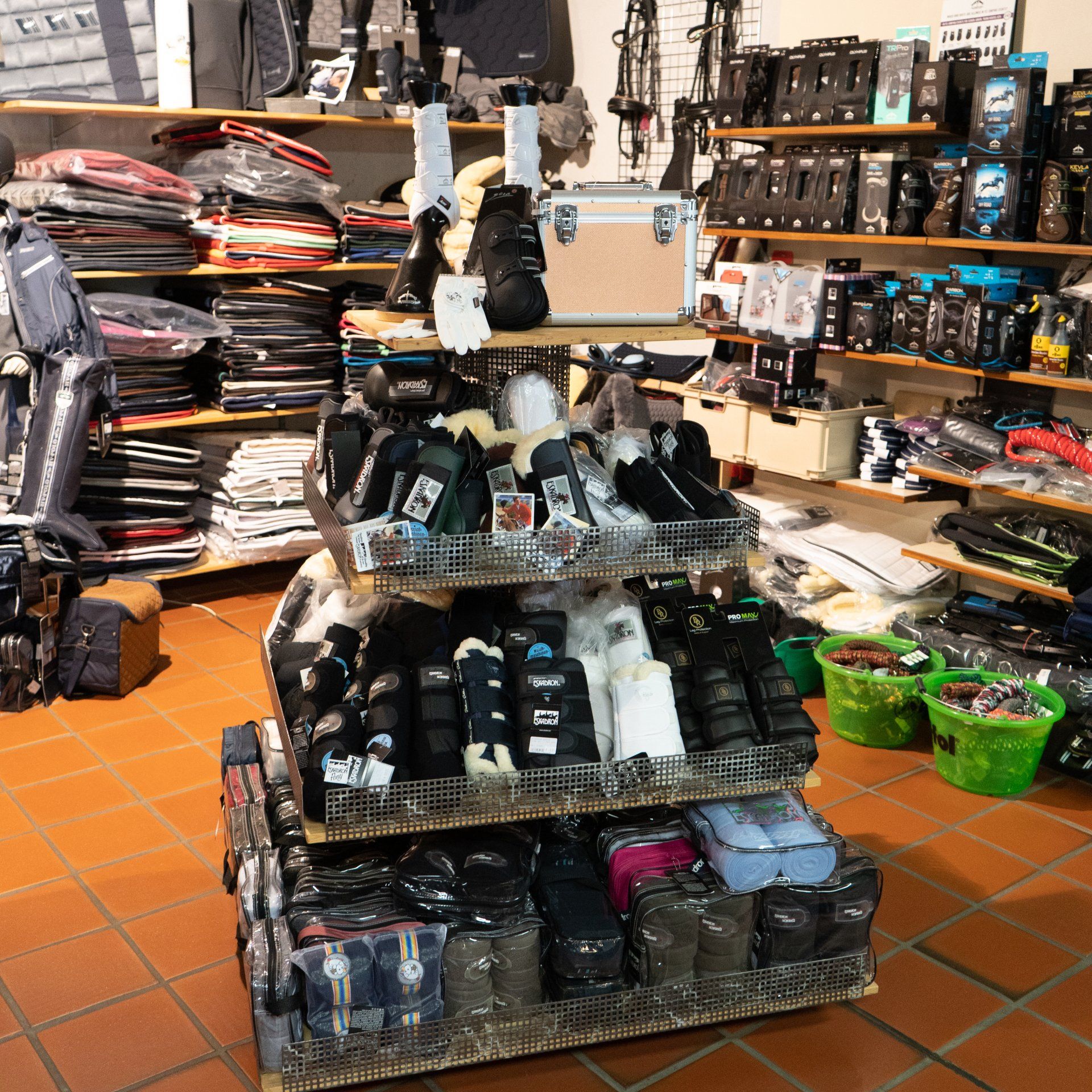 Helme und Protektorwesten für die Sicherheit, Sporen und Gerten, Trensen- und Kandarenzäume, Hilfszügel, Gamaschen und Belohnungfutter gehören ebenfalls in unser Sortiment.